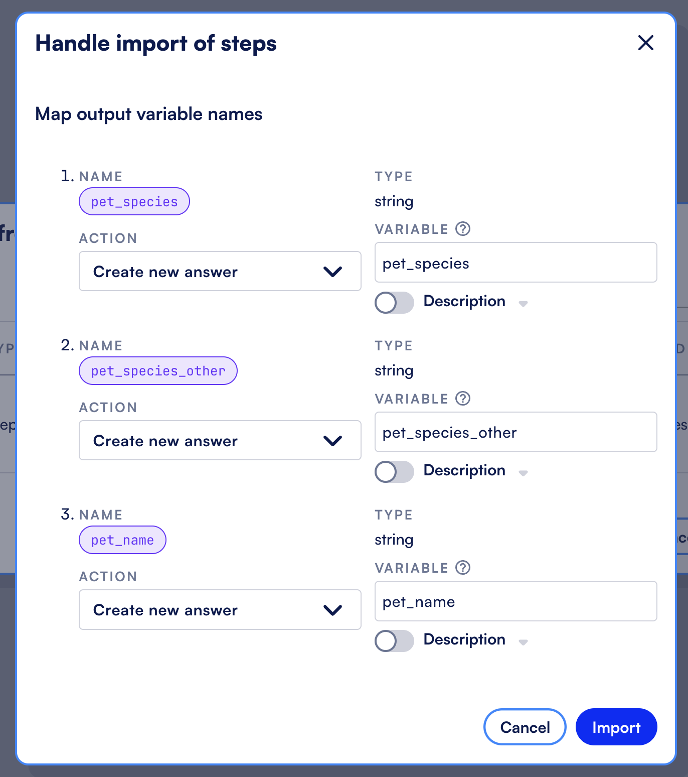 Most content items will either depend on variables, or set answer variables. When inserting a content library item you will need to decide how to map those inputs and outputs to the rest of the flow, similarly to the mapping that happens in [copy and paste](https://docs.formsort.com/creating-flows/building-a-new-flow/copy-paste-of-form-content).