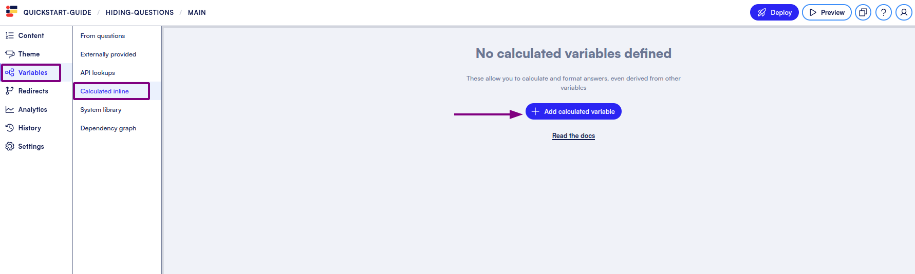 Head to **Calculated Inline** in our **Variables** section, and “Add calculated variable”.