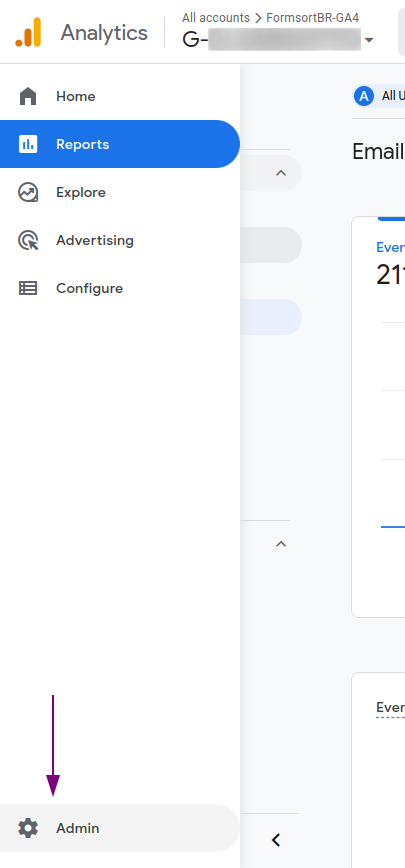 In the left-hand sidebar menu of the Analytics homescreen, open the **Admin** menu.