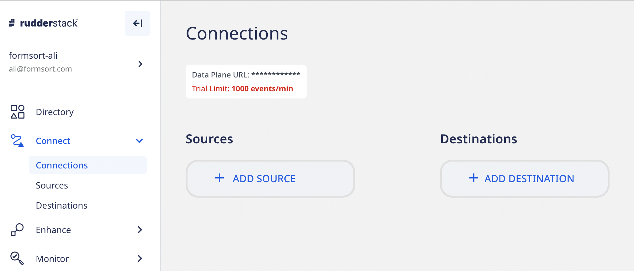 Paste write key and data plane url into the "Rudderstack" section of the Formsort integration.