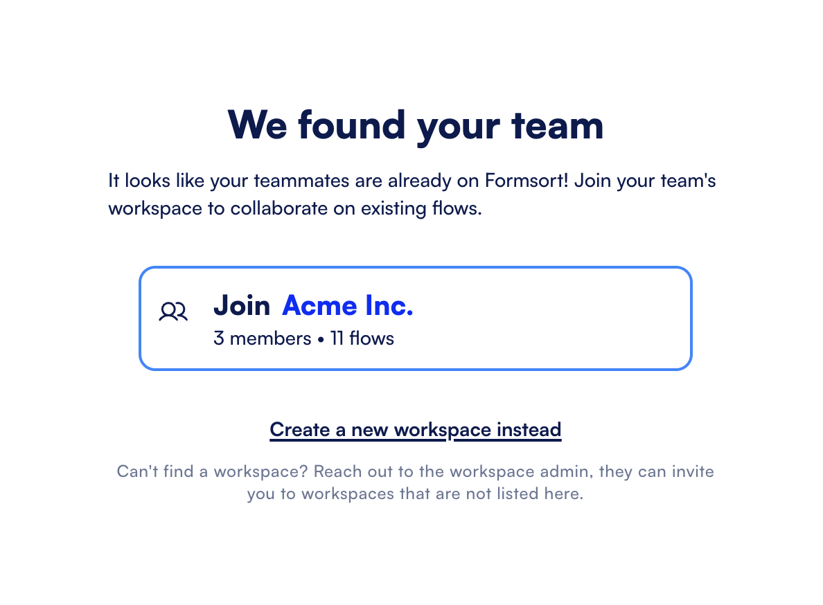 If the setting is enabled for your domain, any new accounts with the shared domain will be shown the option of joining the existing workspaces associated with the domain.